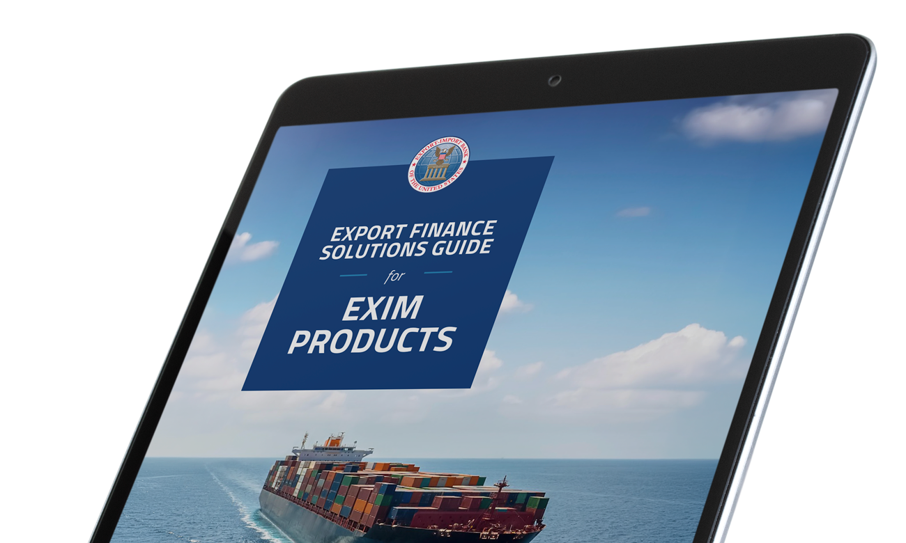 Whether you're expanding into new markets or scaling operations, our financing solutions are designed to meet your needs. Download the Export Finance Solutions Guide to explore how EXIM can support your business at every stage of its export journey.