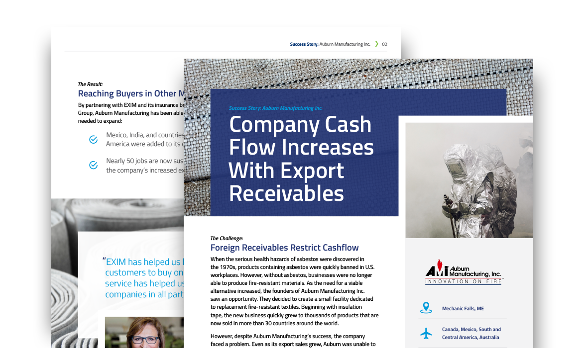 By partnering with EXIM, Auburn Manufacturing now has access to an affordable solution for its financing needs. To learn how they did it, fill out the form!